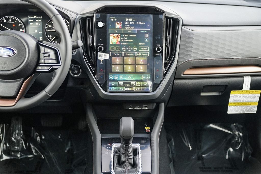 - Radio: Subaru 11.6" Multimedia Plus System -inc: valet mode, integrated center information display, AM/FM stereo HD Radio, multi-touch gesture high resolution display screen, voice activated controls, Bluetooth® audio streaming and hands-free phone connectivity w/SMS text messaging connectivity (refer to subaru.com for cell phone compatibility), iPod control capability, SiriusXM w/360L (4 months free trial/subscription required after), SiriusXM Travel Link (3 years free trial/subscription required after), smartphone integration for Android Auto and Apple CarPlay w/full screen view and wireless connection, USB and Over The Air (OTA) audio system update, steering wheel control switches for audio and Bluetooth®, 6 speakers, 3.5mm auxiliary input jack and roof mounted audio and satellite antenna