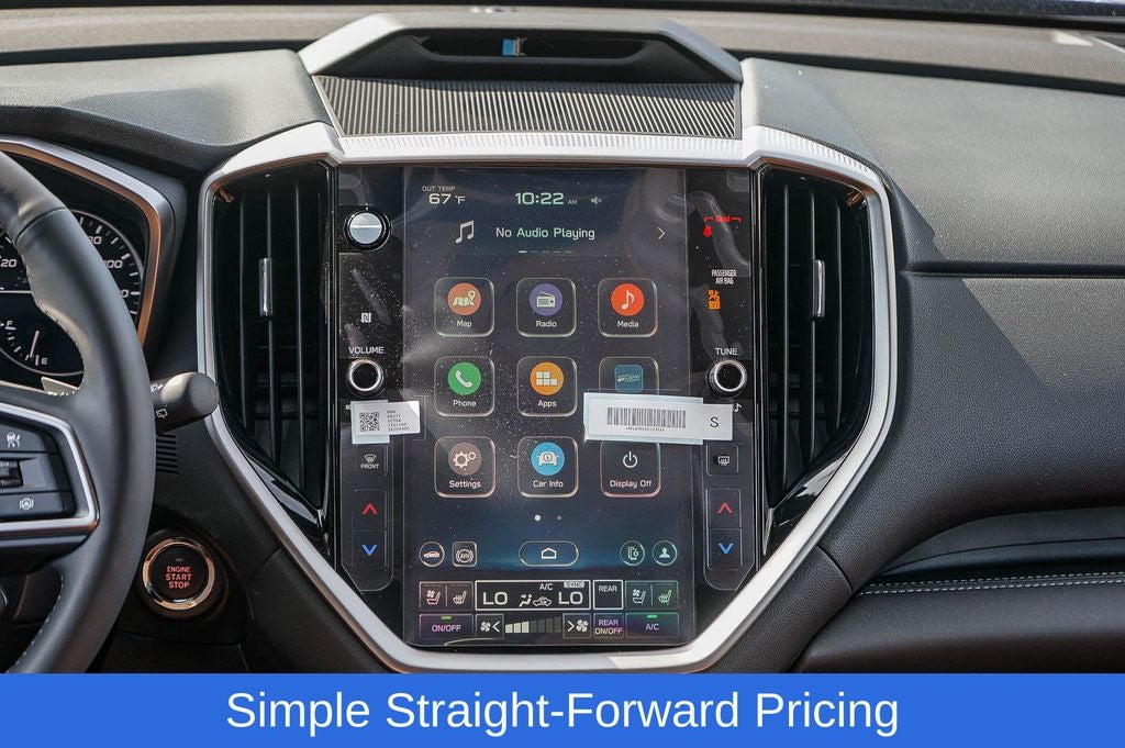 - Radio: Subaru 11.6" Multimedia System w/Navigation -inc: AM/FM stereo HD Radio, multi-touch gesture high resolution display screen, voice activated controls for radio and navigation, Bluetooth® audio streaming and hands-free phone connectivity w/SMS text messaging connectivity (refer to subaru.com for cell phone compatibility), TomTom navigation software w/what3words, iPod control capability, smartphone integration for Android Auto and Apple CarPlay w/full screen view and wireless connection, USB audio system update, audio system control switches, hands-free phone switches and voice command talk switch on steering wheel, harman/kardon quantum logic surround sound speaker system w/14 speakers, subwoofer and harman/kardon 792 watt equivalent maximum output amplifier, illuminated 3.5mm auxiliary input jack, illuminated USB A and C input/charge ports, SiriusXM w/360L (4 months free trial included/subscription required after) and SiriusXM Travel Link (4 months free trial included/subscription required after)