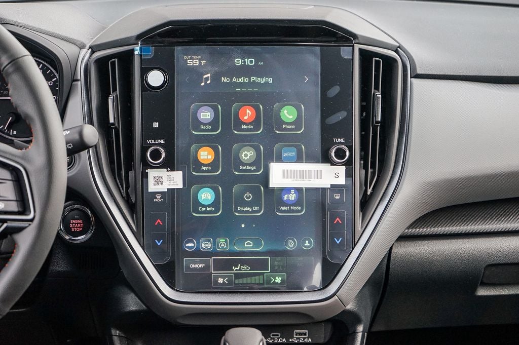 - Radio: Subaru 11.6" Multimedia Plus System -inc: AM/FM stereo, HD Radio, multi-touch gesture high resolution display screen, voice activated controls, Bluetooth® audio streaming and hands-free phone connectivity, Bluetooth® hands-free SMS text messaging connectivity, iPod control capability, smartphone integration: wired and wireless Android Auto w/full screen view and wireless Apple CarPlay w/full screen view, USB and Over The Air (OTA) audio system update, steering wheel audio system and Bluetooth® control switches, 6 speakers (2 dash panel tweeter, 2 front door and 2 rear door), illuminated 3.5mm auxiliary input jack, illuminated front USB A and C input/charge ports, connected services operation indicator, SOS emergency assistance: red SOS button and enhanced roadside assistance: blue i-button