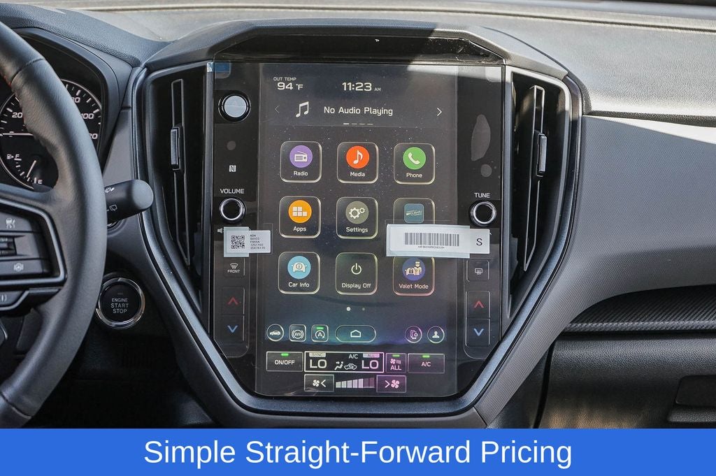 - Radio: Subaru 11.6" Multimedia Plus System -inc: AM/FM stereo, HD Radio, multi-touch gesture high resolution display screen, voice activated controls, Bluetooth® audio streaming and hands-free phone connectivity, Bluetooth® hands-free SMS text messaging connectivity, iPod control capability, smartphone integration: wired and wireless Android Auto w/full screen view and wireless Apple CarPlay w/full screen view, USB and Over The Air (OTA) audio system update, steering wheel audio system and Bluetooth® control switches, 6 speakers (2 dash panel tweeter, 2 front door and 2 rear door), illuminated 3.5mm auxiliary input jack, illuminated front USB A and C input/charge ports, connected services operation indicator, SOS emergency assistance: red SOS button and enhanced roadside assistance: blue i-button