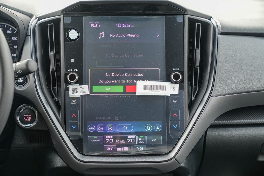 - Radio: Subaru 11.6" Multimedia Plus System -inc: AM/FM stereo, HD Radio, multi-touch gesture high resolution display screen, voice activated controls, Bluetooth® audio streaming and hands-free phone connectivity, Bluetooth® hands-free SMS text messaging connectivity, iPod control capability, smartphone integration: wired and wireless Android Auto w/full screen view and wireless Apple CarPlay w/full screen view, USB and Over The Air (OTA) audio system update, steering wheel audio system and Bluetooth® control switches, 6 speakers (2 dash panel tweeter, 2 front door and 2 rear door), illuminated 3.5mm auxiliary input jack, illuminated front USB A and C input/charge ports, connected services operation indicator, SOS emergency assistance: red SOS button and enhanced roadside assistance: blue i-button