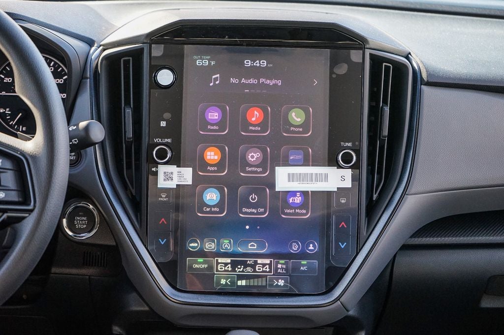- Radio: Subaru 11.6" Multimedia Plus System -inc: AM/FM stereo, HD Radio, multi-touch gesture high resolution display screen, voice activated controls, Bluetooth® audio streaming and hands-free phone connectivity, Bluetooth® hands-free SMS text messaging connectivity, iPod control capability, smartphone integration: wired and wireless Android Auto w/full screen view and wireless Apple CarPlay w/full screen view, USB and Over The Air (OTA) audio system update, steering wheel audio system and Bluetooth® control switches, 6 speakers (2 dash panel tweeter, 2 front door and 2 rear door), illuminated 3.5mm auxiliary input jack, illuminated front USB A and C input/charge ports, connected services operation indicator, SOS emergency assistance: red SOS button and enhanced roadside assistance: blue i-button