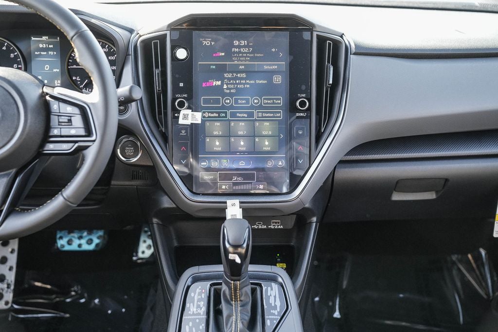 - Radio: Subaru 11.6" Multimedia Plus System -inc: AM/FM stereo, HD Radio, multi-touch gesture high resolution display screen, voice activated controls, Bluetooth® audio streaming and hands-free phone connectivity, Bluetooth® hands-free SMS text messaging connectivity, iPod control capability, smartphone integration: wired and wireless Android Auto w/full screen view and wireless Apple CarPlay w/full screen view, USB and Over The Air (OTA) audio system update, steering wheel audio system and Bluetooth® control switches, 6 speakers (2 dash panel tweeter, 2 front door and 2 rear door), illuminated 3.5mm auxiliary input jack, illuminated front USB A and C input/charge ports, connected services operation indicator, SOS emergency assistance: red SOS button and enhanced roadside assistance: blue i-button