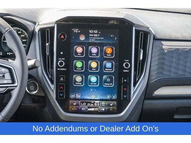 - Radio: Subaru 11.6" Multimedia Navigation System -inc: valet mode, integrated center information display, AM/FM stereo HD Radio, multi-touch gesture high resolution display screen, voice activated controls, voice activated navigation, Bluetooth® audio streaming and hands-free phone connectivity w/SMS text messaging (refer to Subaru.com for cellphone compatibility), TomTom navigation software w/what3words, iPod control capability, smartphone integration: Android Auto and Apple CarPlay w/full screen view and wireless connection, SiriusXM satellite radio w/360L (free 4-month trial subscription included), USB and Over The Air (OTA) audio system update, USB and Map Over The Air (MOTA) TomTom navigation system update (3 years free map updates), steering wheel controls, harman/kardon speaker system w/11 speakers and 576 watt equivalent maximum output amplifier, 3.5mm auxiliary input jack and roof mounted audio, satellite antenna and SiriusXM Travel Link (4 months free trial included/subscription required after)