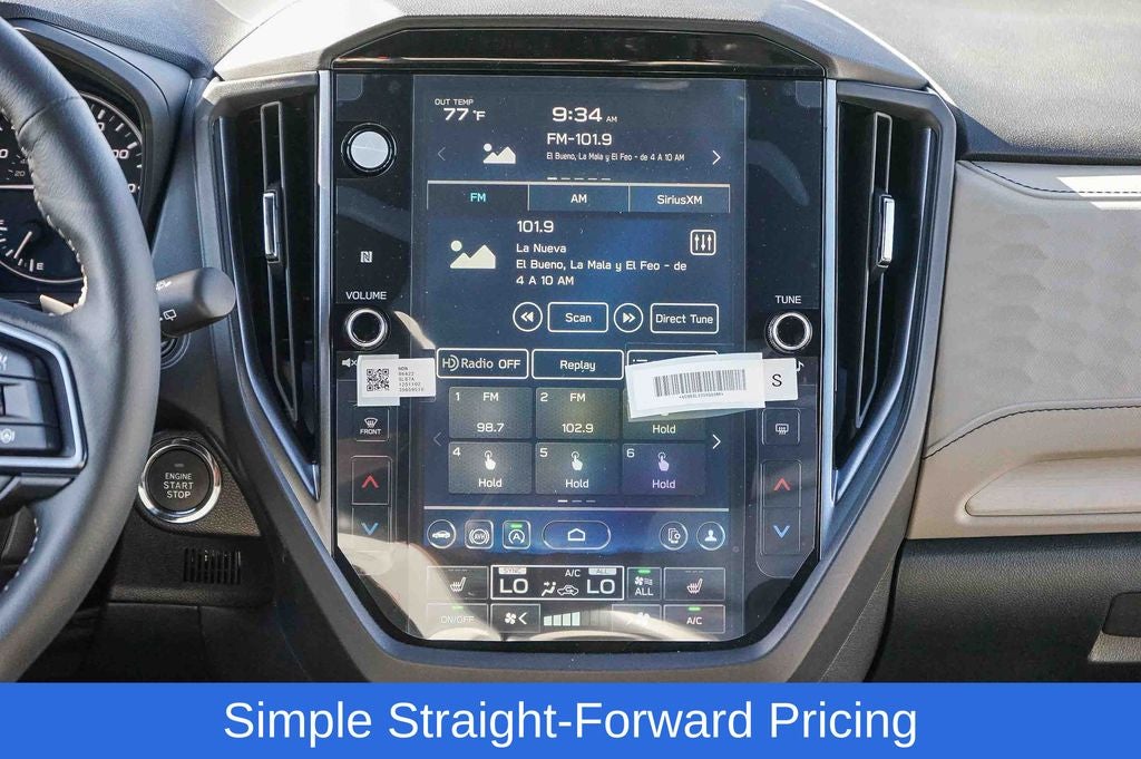 - Radio: Subaru 11.6" Multimedia Plus System -inc: valet mode, integrated center information display, AM/FM stereo HD Radio, multi-touch gesture high resolution display screen, voice activated controls, Bluetooth® audio streaming and hands-free phone connectivity w/SMS text messaging (refer to Subaru.com for cellphone compatibility), iPod control capability, smartphone integration: Android Auto and Apple CarPlay w/full screen view and wireless connection, SiriusXM satellite radio w/360L (free 4-month trial subscription included), USB and Over The Air (OTA) audio system update, steering wheel controls, 6 speakers, 3.5mm auxiliary input jack and roof mounted audio and satellite antenna