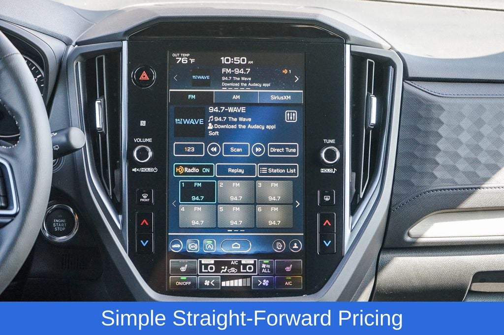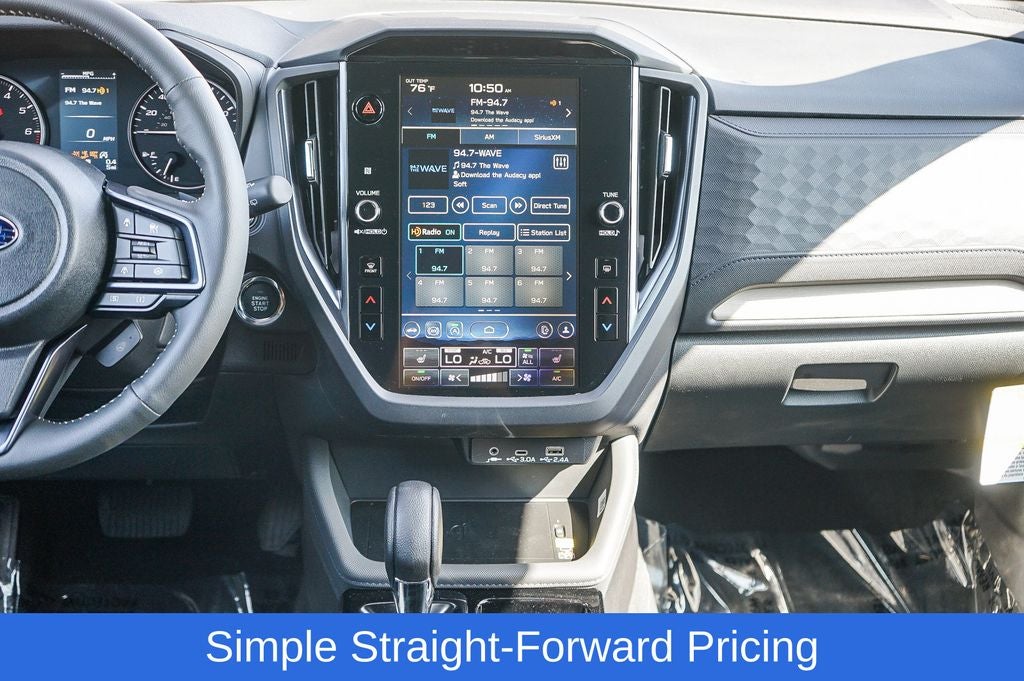 - Radio: Subaru 11.6" Multimedia Plus System -inc: valet mode, integrated center information display, AM/FM stereo HD Radio, multi-touch gesture high resolution display screen, voice activated controls, Bluetooth® audio streaming and hands-free phone connectivity w/SMS text messaging (refer to Subaru.com for cellphone compatibility), iPod control capability, smartphone integration: Android Auto and Apple CarPlay w/full screen view and wireless connection, SiriusXM satellite radio w/360L (free 4-month trial subscription included), USB and Over The Air (OTA) audio system update, steering wheel controls, 6 speakers, 3.5mm auxiliary input jack and roof mounted audio and satellite antenna