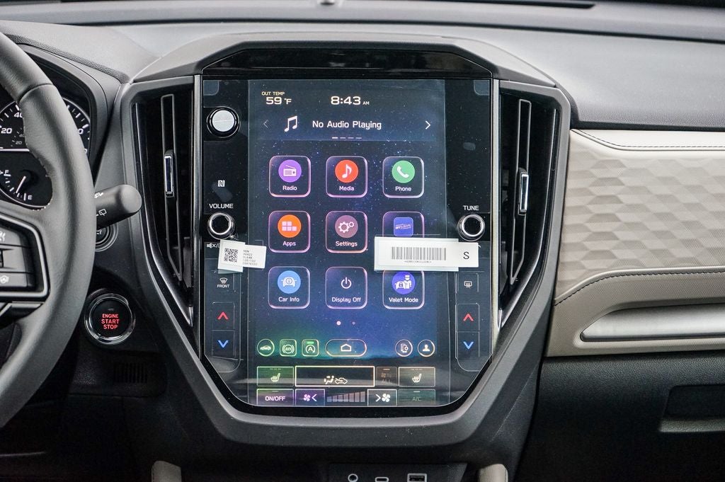 - Radio: Subaru 11.6" Multimedia Plus System -inc: valet mode, integrated center information display, AM/FM stereo HD Radio, multi-touch gesture high resolution display screen, voice activated controls, Bluetooth® audio streaming and hands-free phone connectivity w/SMS text messaging (refer to Subaru.com for cellphone compatibility), iPod control capability, smartphone integration: Android Auto and Apple CarPlay w/full screen view and wireless connection, SiriusXM satellite radio w/360L (free 4-month trial subscription included), USB and Over The Air (OTA) audio system update, steering wheel controls, 6 speakers, 3.5mm auxiliary input jack and roof mounted audio and satellite antenna