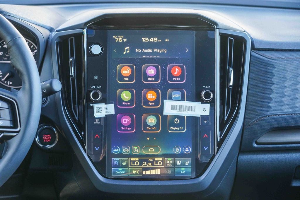 - Radio: Subaru 11.6" Multimedia Navigation System -inc: valet mode, integrated center information display, AM/FM stereo HD Radio, multi-touch gesture high resolution display screen, voice activated controls, voice activated navigation, Bluetooth® audio streaming and hands-free phone connectivity w/SMS text messaging (refer to Subaru.com for cellphone compatibility), TomTom navigation software w/what3words, iPod control capability, smartphone integration: Android Auto and Apple CarPlay w/full screen view and wireless connection, SiriusXM satellite radio w/360L (free 4-month trial subscription included), USB and Over The Air (OTA) audio system update, USB and Map Over The Air (MOTA) TomTom navigation system update (3 years free map updates), steering wheel controls, harman/Kardon speaker system w/11 speakers and 576 watt equivalent maximum output amplifier, 3.5mm auxiliary input jack and roof mounted audio, satellite antenna and SiriusXM Travel Link (4 months free trial included/subscription required after)