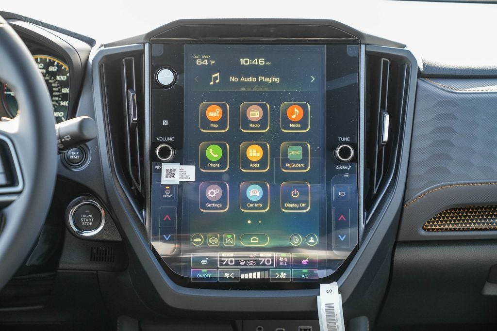 • Radio: Subaru 11.6" Multimedia Plus System -inc: valet mode, integrated center information display, AM/FM stereo HD Radio, multi-touch gesture high resolution display screen, voice activated controls, Bluetooth® audio streaming and hands-free phone connectivity w/SMS text messaging (refer to Subaru.com for cellphone compatibility), iPod control capability, smartphone integration: Android Auto and Apple CarPlay w/full screen view and wireless connection, SiriusXM satellite radio w/360L (free 4-month trial subscription included), USB and Over The Air (OTA) audio system update, steering wheel controls, 6 speakers, 3.5mm auxiliary input jack and roof mounted audio and satellite antenna