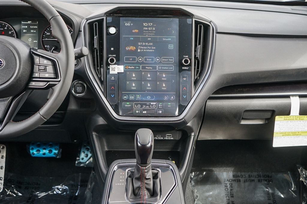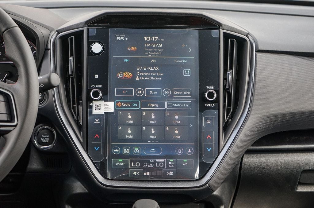 - Radio: Subaru 11.6" Multimedia Plus System -inc: valet mode, AM/FM stereo, HD Radio, multi-touch gesture high resolution display screen, voice activated controls, Bluetooth® audio streaming and hands-free phone connectivity, Bluetooth® hands-free SMS text messaging connectivity, iPod control capability, smartphone integration: wired and wireless Android Auto w/full screen view, wireless Apple CarPlay w/full screen view and wireless connection, USB and Over The Air (OTA) audio system update, audio system and Bluetooth® steering wheel control switches, 6 speakers (2 dash panel tweeter, 2 front door, 2 rear door), illuminated 3.5mm auxiliary input jack, illuminated USB A and C input charge ports, roof mounted satellite and connected services, roof mounted black antenna, connected services operation indicator, SOS emergency assistance (red button) and ehanced roadside assistance (blue i-button)