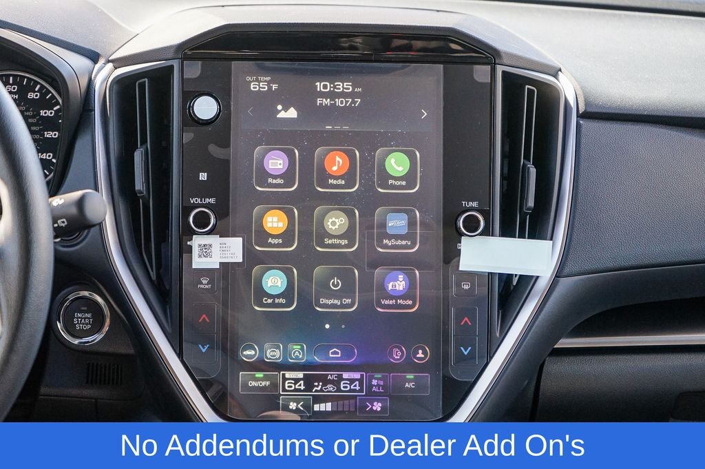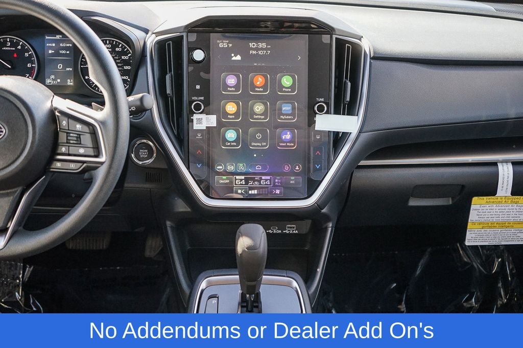 - Radio: Subaru 11.6" Multimedia Plus System -inc: valet mode, AM/FM stereo, HD Radio, multi-touch gesture high resolution display screen, voice activated controls, Bluetooth® audio streaming and hands-free phone connectivity, Bluetooth® hands-free SMS text messaging connectivity, iPod control capability, smartphone integration: wired and wireless Android Auto w/full screen view, wireless Apple CarPlay w/full screen view and wireless connection, USB and Over The Air (OTA) audio system update, audio system and Bluetooth® steering wheel control switches, 6 speakers (2 dash panel tweeter, 2 front door, 2 rear door), illuminated 3.5mm auxiliary input jack, illuminated USB A and C input charge ports, roof mounted satellite and connected services, roof mounted black antenna, connected services operation indicator, SOS emergency assistance (red button) and ehanced roadside assistance (blue i-button)