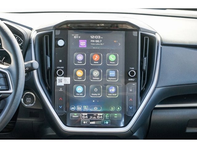 - Radio: Subaru 11.6" Multimedia Plus System -inc: valet mode, AM/FM stereo, HD Radio, multi-touch gesture high resolution display screen, voice activated controls, Bluetooth® audio streaming and hands-free phone connectivity, Bluetooth® hands-free SMS text messaging connectivity, iPod control capability, smartphone integration: wired and wireless Android Auto w/full screen view, wireless Apple CarPlay w/full screen view and wireless connection, USB and Over The Air (OTA) audio system update, audio system and Bluetooth® steering wheel control switches, 6 speakers (2 dash panel tweeter, 2 front door, 2 rear door), illuminated 3.5mm auxiliary input jack, illuminated USB A and C input charge ports, roof mounted satellite and connected services, roof mounted black antenna, connected services operation indicator, SOS emergency assistance (red button) and ehanced roadside assistance (blue i-button)