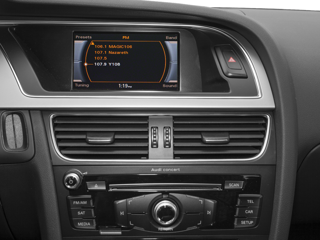 - Radio: Audi Concert System w/1CD Player -inc: MP3 capable, AM/FM radio, auxiliary input jack, SD card slot w/32GB capacity for MP3 files, speed-dependent volume control, MMI navigation plus system for controlling infotainment/climate/car setup w/6.5" color screen, Audi music interface w/iPod integration includes one cable for iPod connection, Audi 6-channel DSP extended sound system w/10 speakers including subwoofer, 180w sounds system, Bluetooth® wireless technology preparation for mobile phone, HD Radio technology and SiriusXM satellite radio (90-day trial subscription)