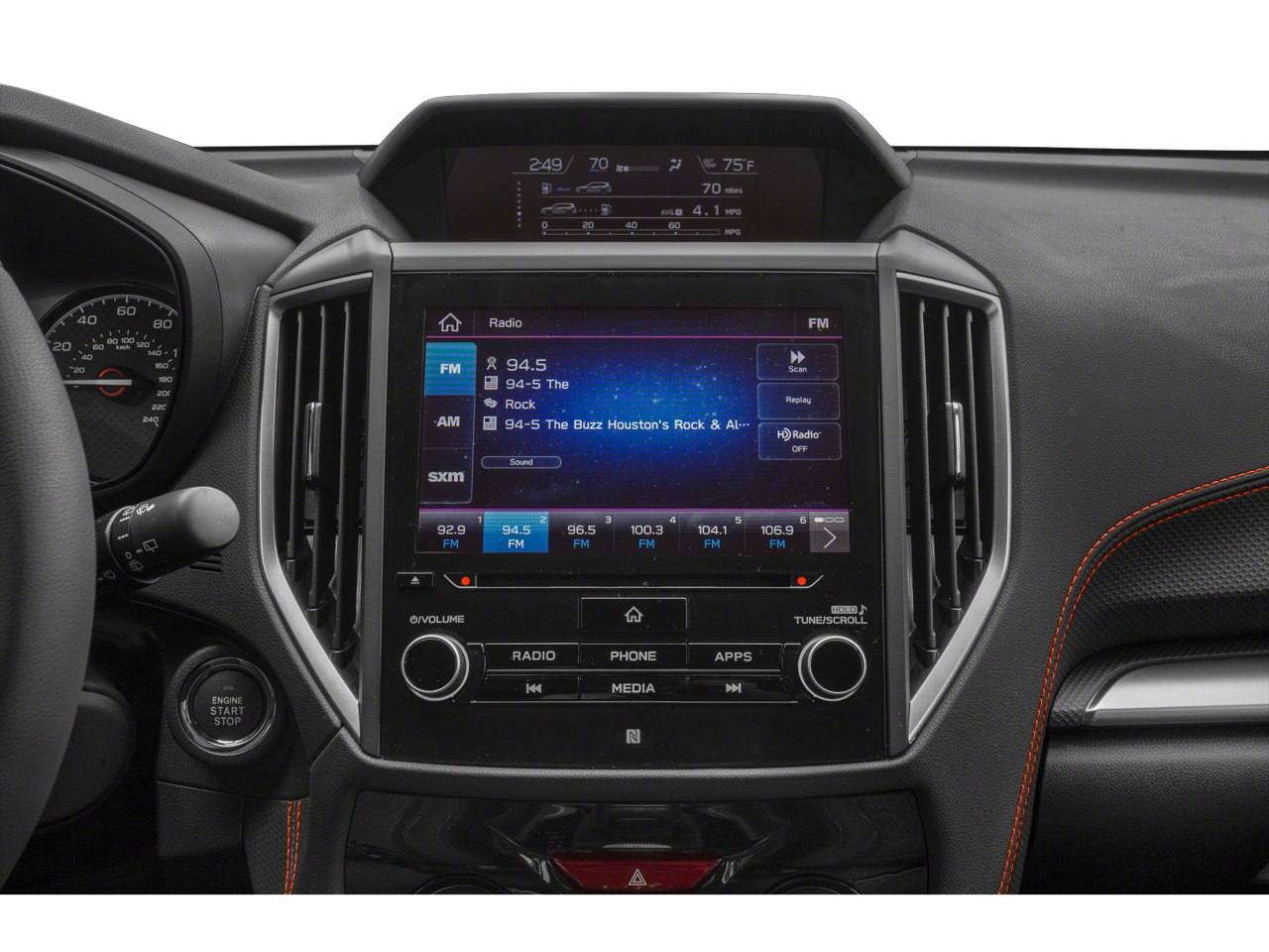 - Radio: Subaru Starlink 6.5" Multimedia Plus System -inc: AM/FM stereo HD Radio w/single-disc CD player w/MP3/WMA/CRR/RW file capability, multi-touch gesture high resolution display, 6.5" LCD screen, voice activated controls, Bluetooth® audio streaming connectivity, hands-free phone connectivity and hands-free SMS text messaging connectivity, iPod control capability, rear-vision camera display, SiriusXM All Access radio (subscription required), smartphone integration: AHA, Android Auto, CarPlay and Pandora, Starlink cloud applications: refer to subaru.com for app availability, 6 speakers, 4 USB input ports, 3.5mm auxiliary input jack and body color roof mounted antenna
