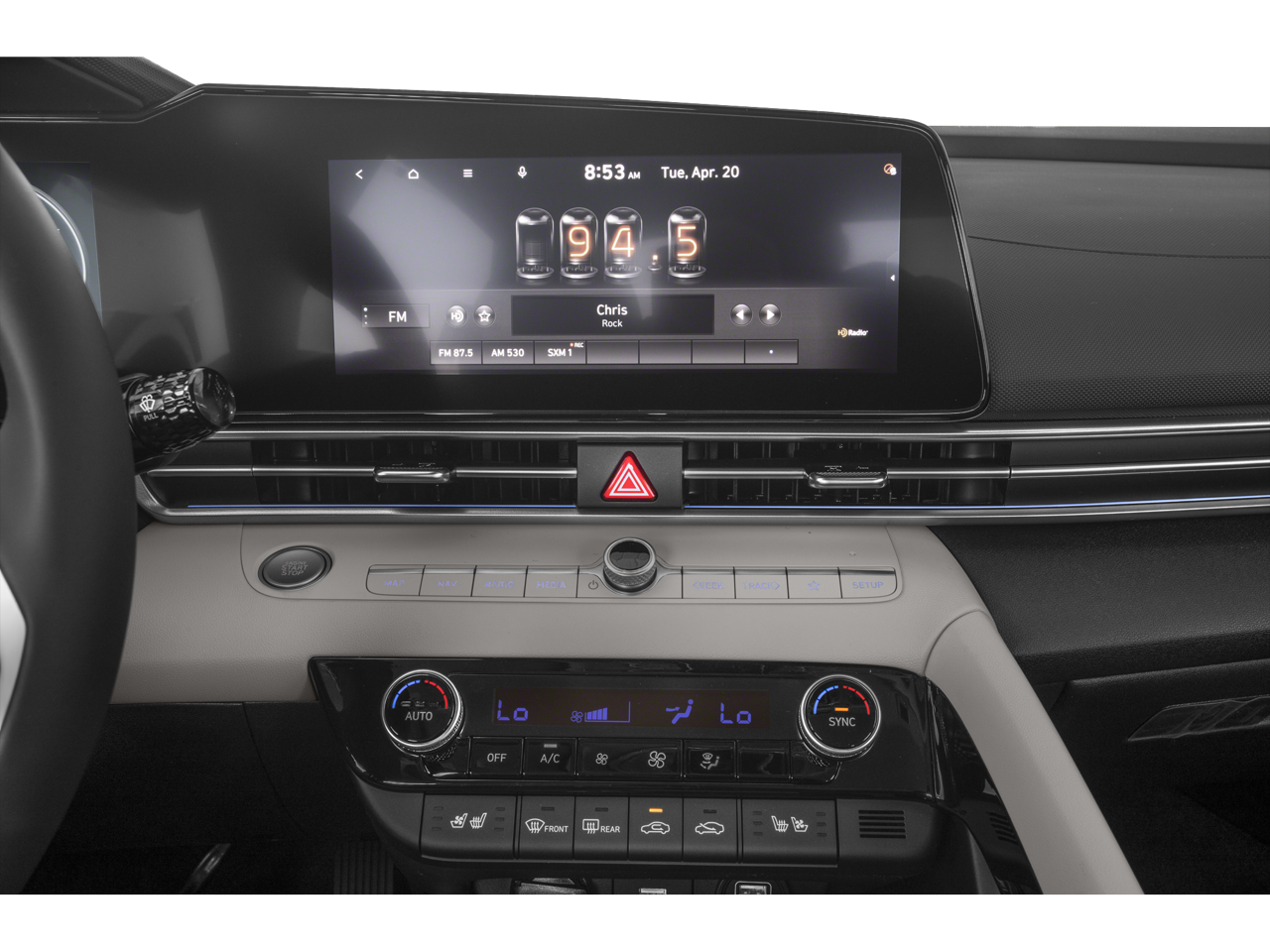 - Radio: AM/FM/HD/SiriusXM Display Audio -inc: 8" high resolution touch screen display, 6 speakers, Blue Link connected car system, wireless Apple CarPlay & Android Auto, Bluetooth® hands-free phone system w/voice recognition, USB port and speed-sensitive automatic volume control