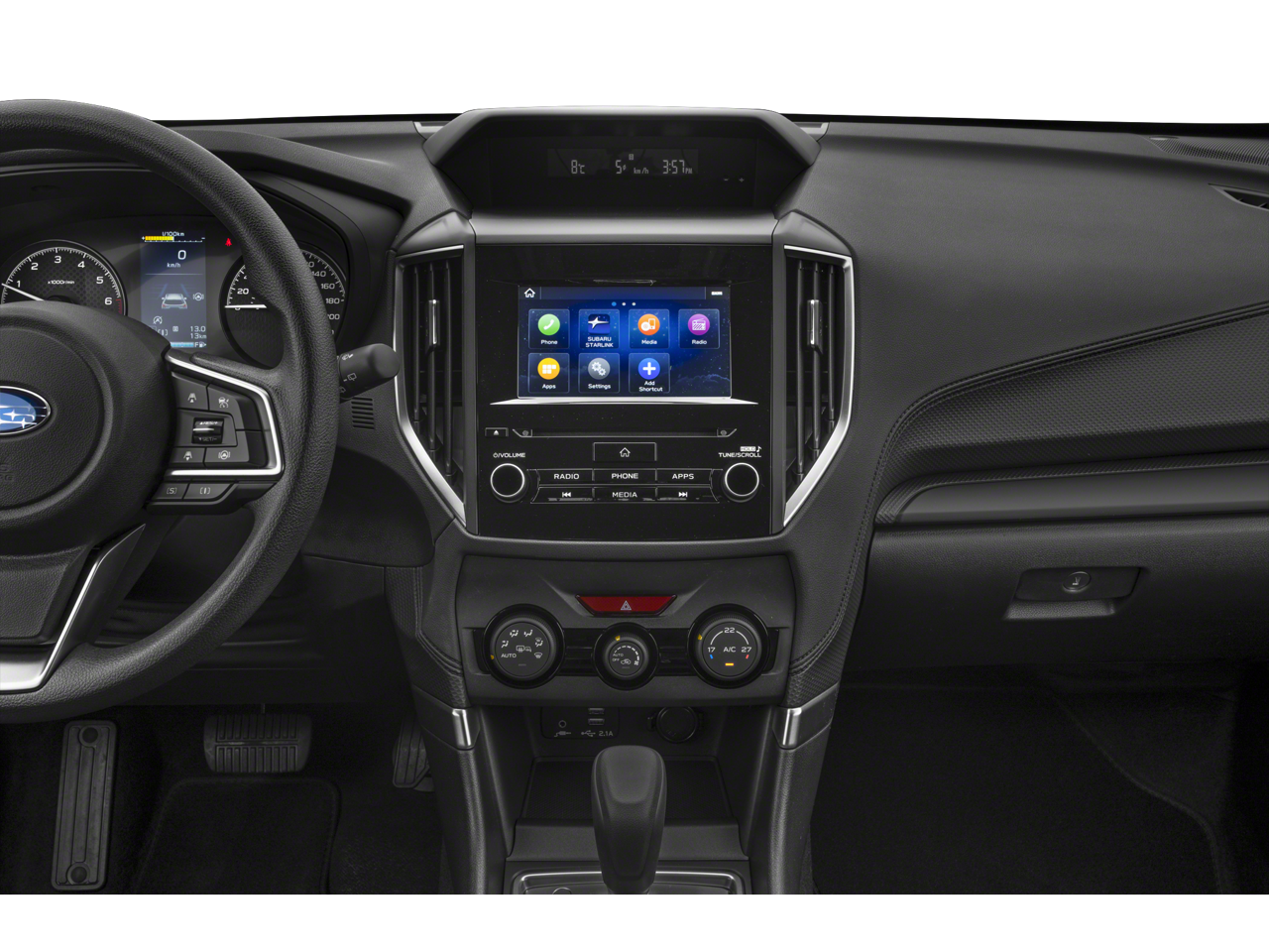 - Radio: Subaru Starlink 6.5" Multimedia Plus System -inc: AM/FM stereo, MP3/WMA/CRR/RW file capability, multi-touch gesture high resolution display screen, voice activated controls, Bluetooth® audio streaming, hands-free phone connectivity and hands-free SMS text messaging connectivity (refer to subaru.com for cell phone compatibility), iPod control capability, SiriusXM All Access radio and Travel Link (4 months free trial/subscription required after), smartphone integration for AHA, Android Auto, Apple CarPlay, Pandora and Starlink cloud applications (refer to subaru.com for app availability), USB audio system update, steering wheel controls for audio and Bluetooth®, 4 speakers, 3.5mm auxiliary input jack and USB A input/charge port